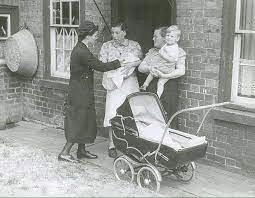 Back in the 50s and 60s, prams and pushchairs were big, heavy and cumbersome. Prams didn’t fold up to go on buses or in cars. Pushchairs folded but were still bulky and heavy. The baby started off in a big, usually coach built pram and at a certain age graduated to a pushchair. There were no lightweight buggies. Families with cars bought a small rectangular soft-bodied thing known as a carry-cot which just sat on the back seat with the baby lying in it. There were no seatbelts in cars then and definitely nothing securing the carry-cot. There were no car seats for babies, toddlers and children. They were held in an adult’s arms until old enough to sit up and then just travelled unsecured in the back seat.