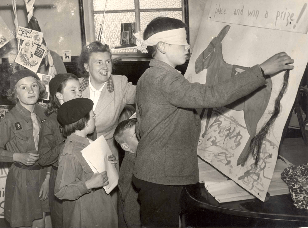 Pin the tail on the donkey is a game played by groups of children. The earliest version listed in a catalogue of American games compiled by the American Game Collectors Association in 1998, is dated 1899, and attributed to Charles Zimmerling. My mum used to draw the outline of a donkey on a piece of paper.