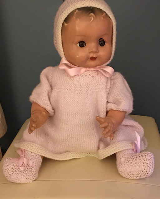 The war had only finished in 1945 and rationing was still in place in the early fifties. People weren’t well off and there wasn’t the same choice of consumer goods as there is now. I remember the Christmases of my childhood so clearly and every one was magical. Turkey wasn’t yet the UK’s main Christmas meat. Chicken was still quite a luxury at that time, before the days of mass produced chicken, so that was often what people ate. Everyone made paper chains and paper lanterns. I remember making them at school and at home in the 50s and early 60s. Gifts were mostly things you needed and were often home made. Board games were hugely popular in homes and were often given as gifts. Children were given art and craft sets too. I don’t remember any of our toys needing batteries or cables. Moving toys were mostly wind-up and, when I was little, often made of tin. Bigger dolls and baby dolls like mine were still made of pottery. Plastic ones arrived soon after. I still have the one I was given for Christmas when I was about eight years old. It’s amazing she has survived because she wasn’t a shelf doll, she was payed with for many years.